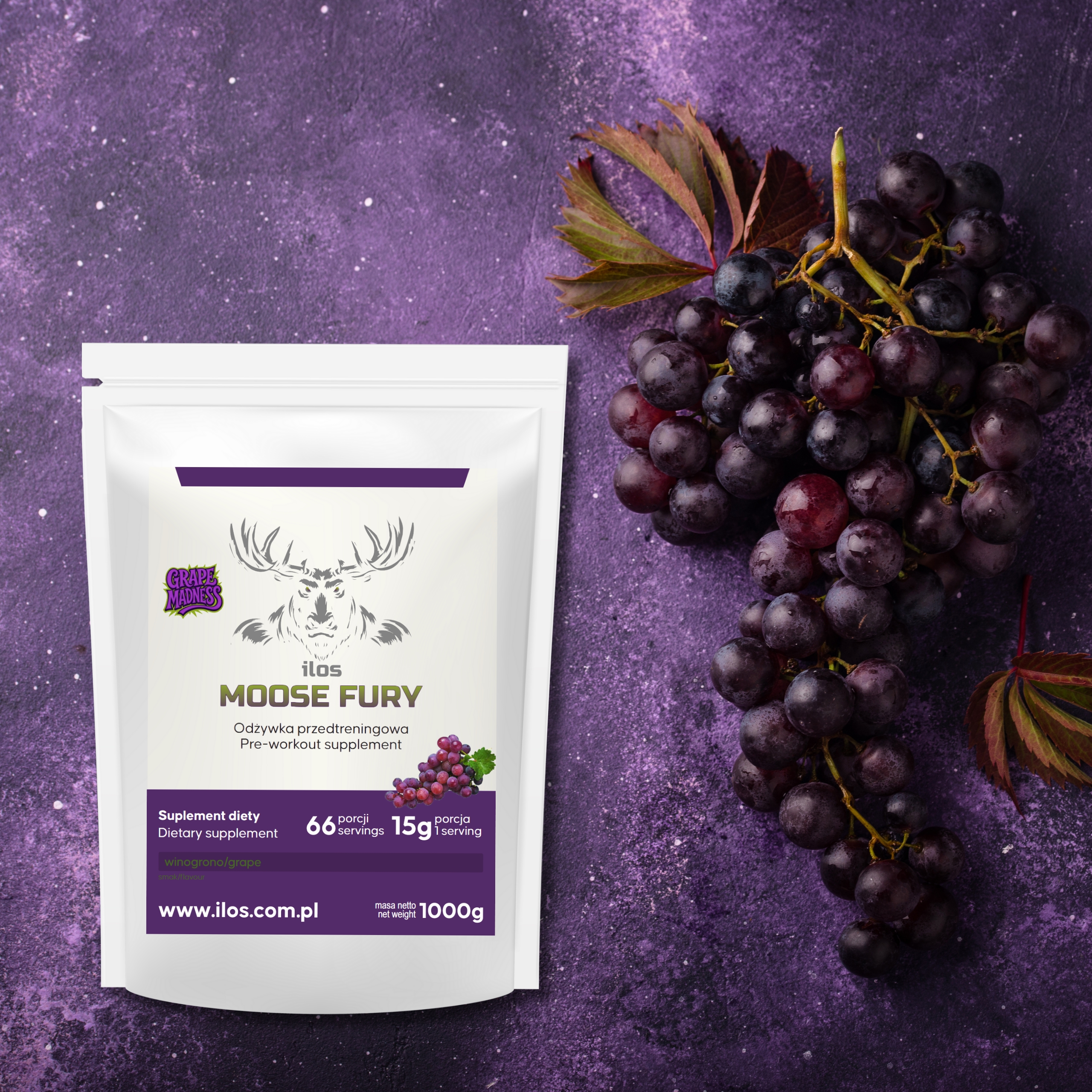 Moose Fury pre-workout smak winogrono