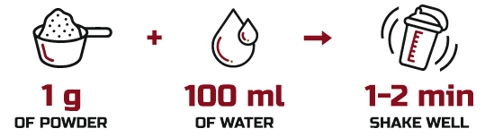 Odmierzyć jedną porcję – 1 g (1 miarka), wymieszać ją w 100 ml wody. Spożywać raz dziennie. Spożyć bezpośrednio po przygotowaniu.