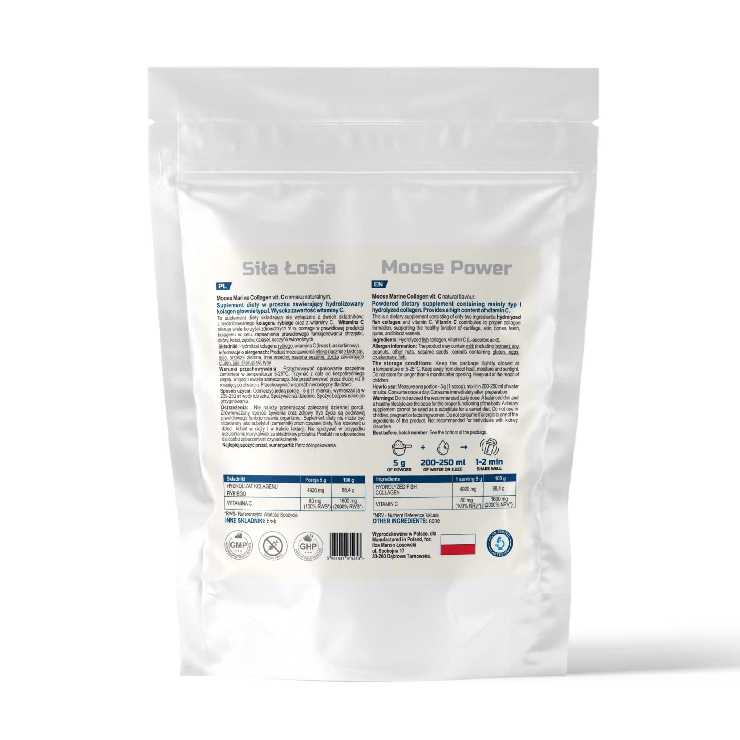✅Źródło kolagenu- jedna porcja suplementu diety dostarcza do organizmu aż 4920 mg hydrolizatu kolagenu rybiego.