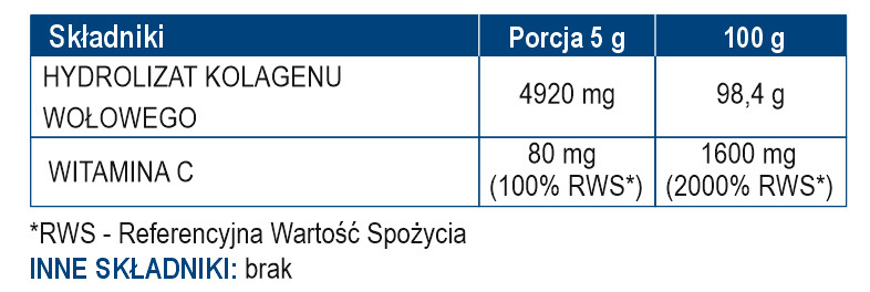 Hydrolizat kolagenu wołowego, witamina C (kwas L-askorbinowy).