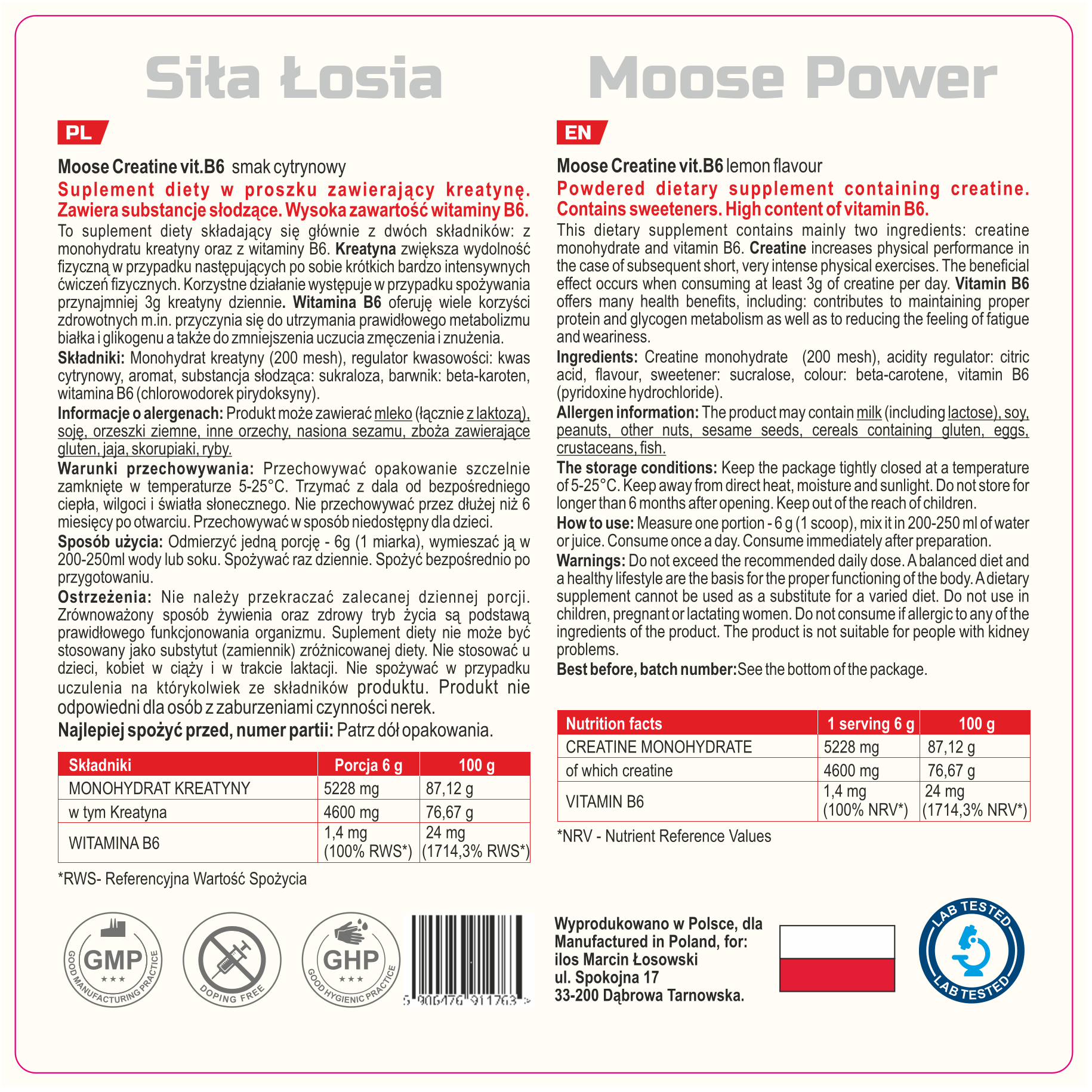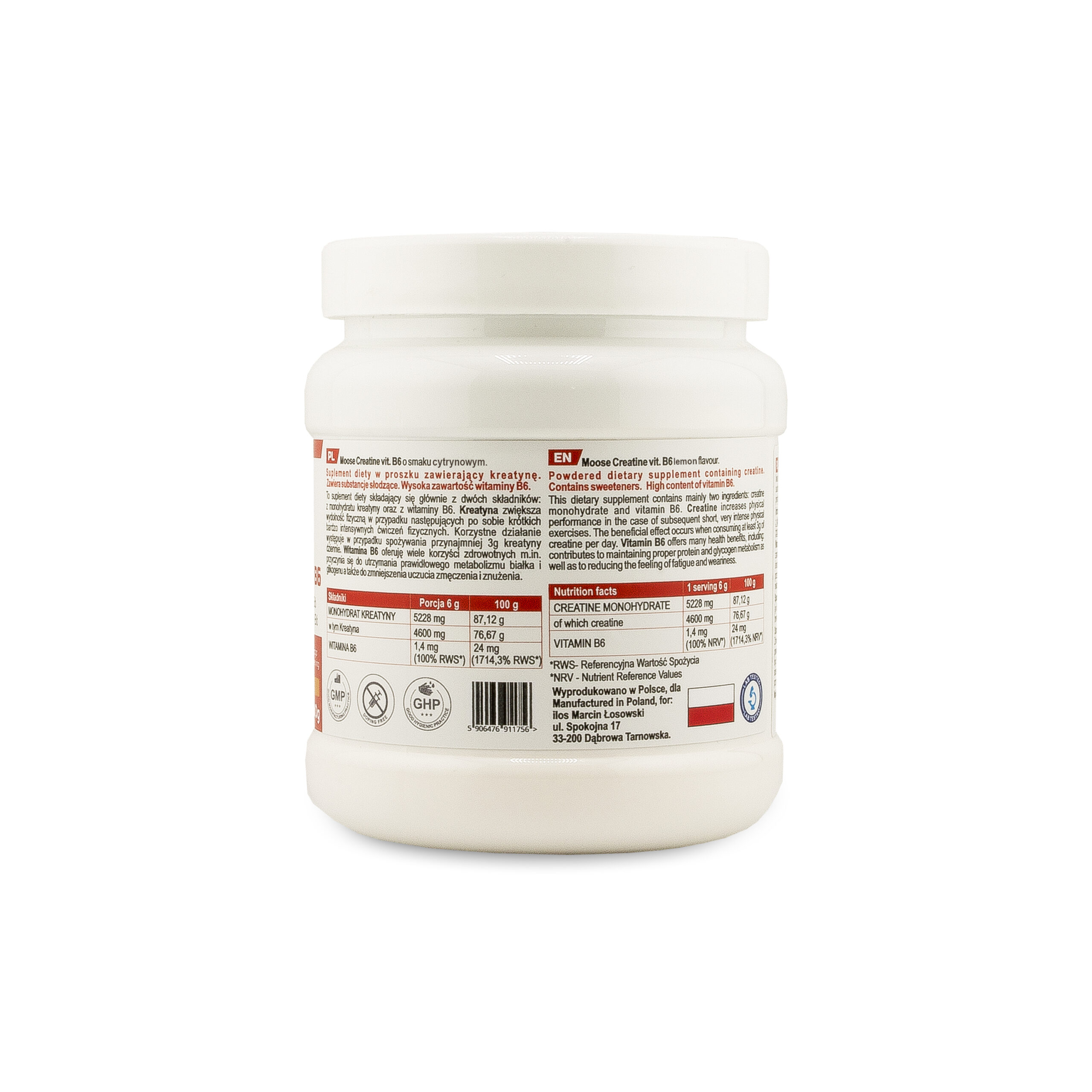 Napisz pierwszą opinię o „Moose Creatine vit. B6 lemon 400g”