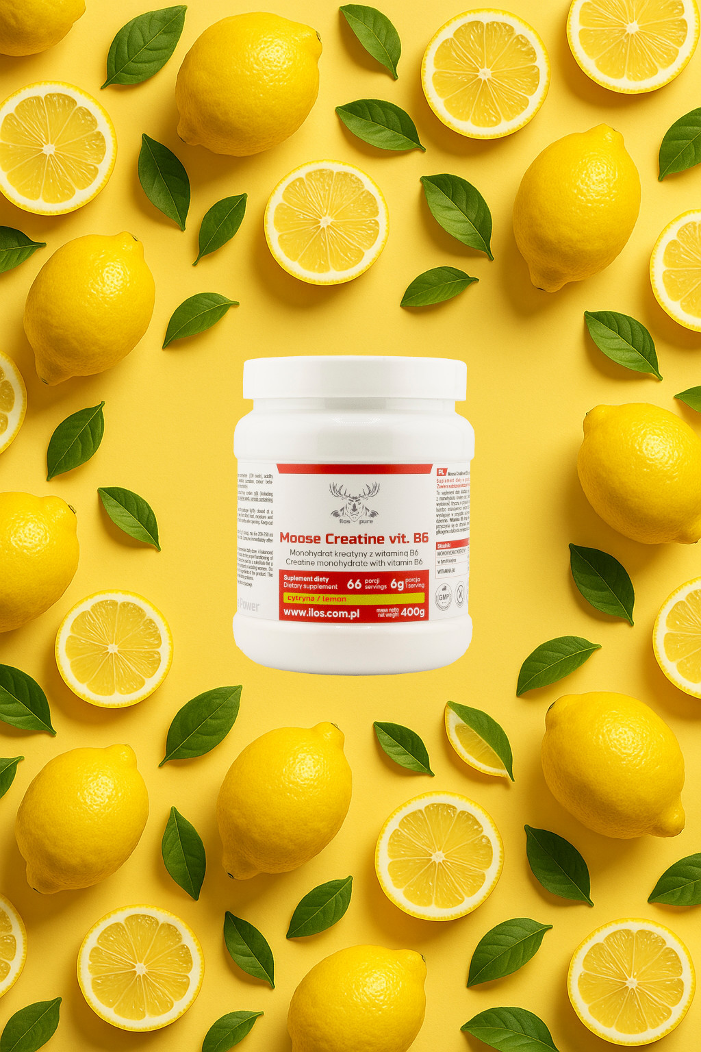 KREATYNA MONOHYDRAT400g - ilos SIŁA ŁOSIA - smak CYTRYNOWY 0,4kg Wielkość porcji 6 g